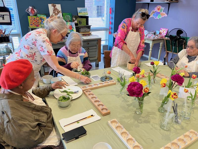 Met veel plezier hebben de deelnemers van Spaarnhout meegedaan met de workshop Plantaardig verven. Drie woensdagen lang werd er onder leiding van Klaartje Dullemond verf van planten gemaakt en daar mee geverfd.